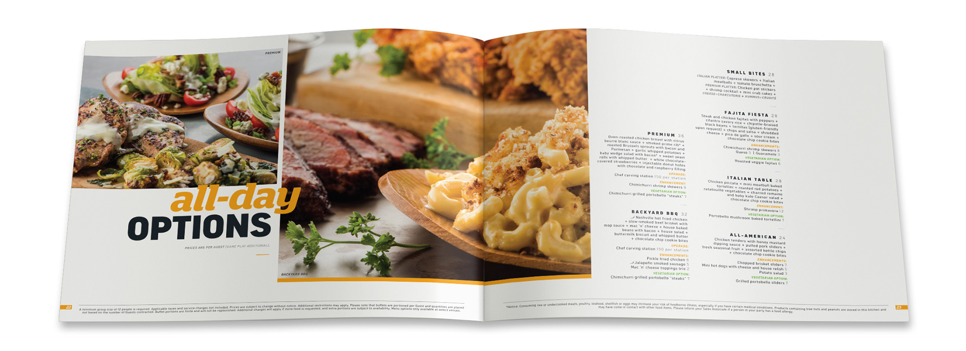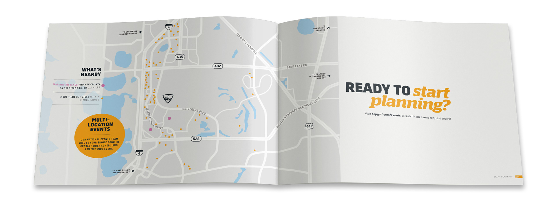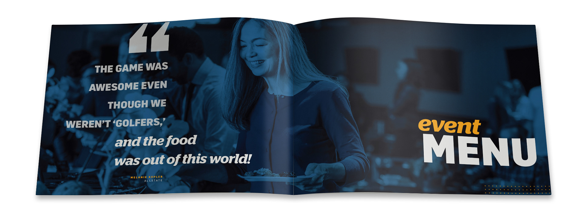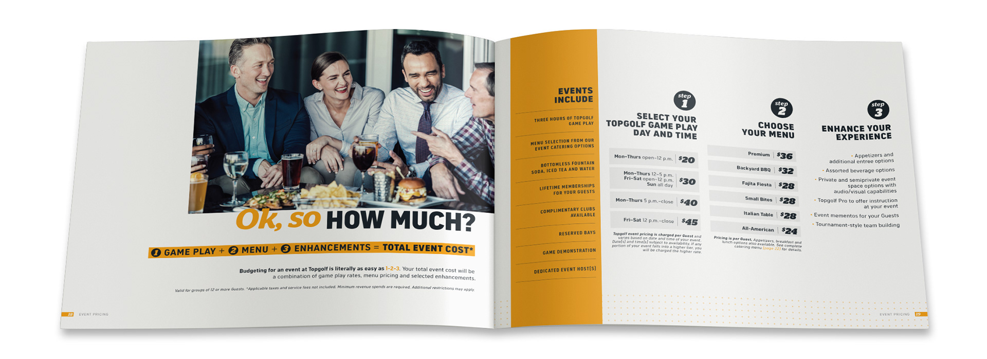 From pagination to press checks, I quarterbacked the entire production of these comprehensive sales tools. Each Topgolf venue in the U.S. (there are 50+) received a custom guideĀ tailored to its specific event offerings.